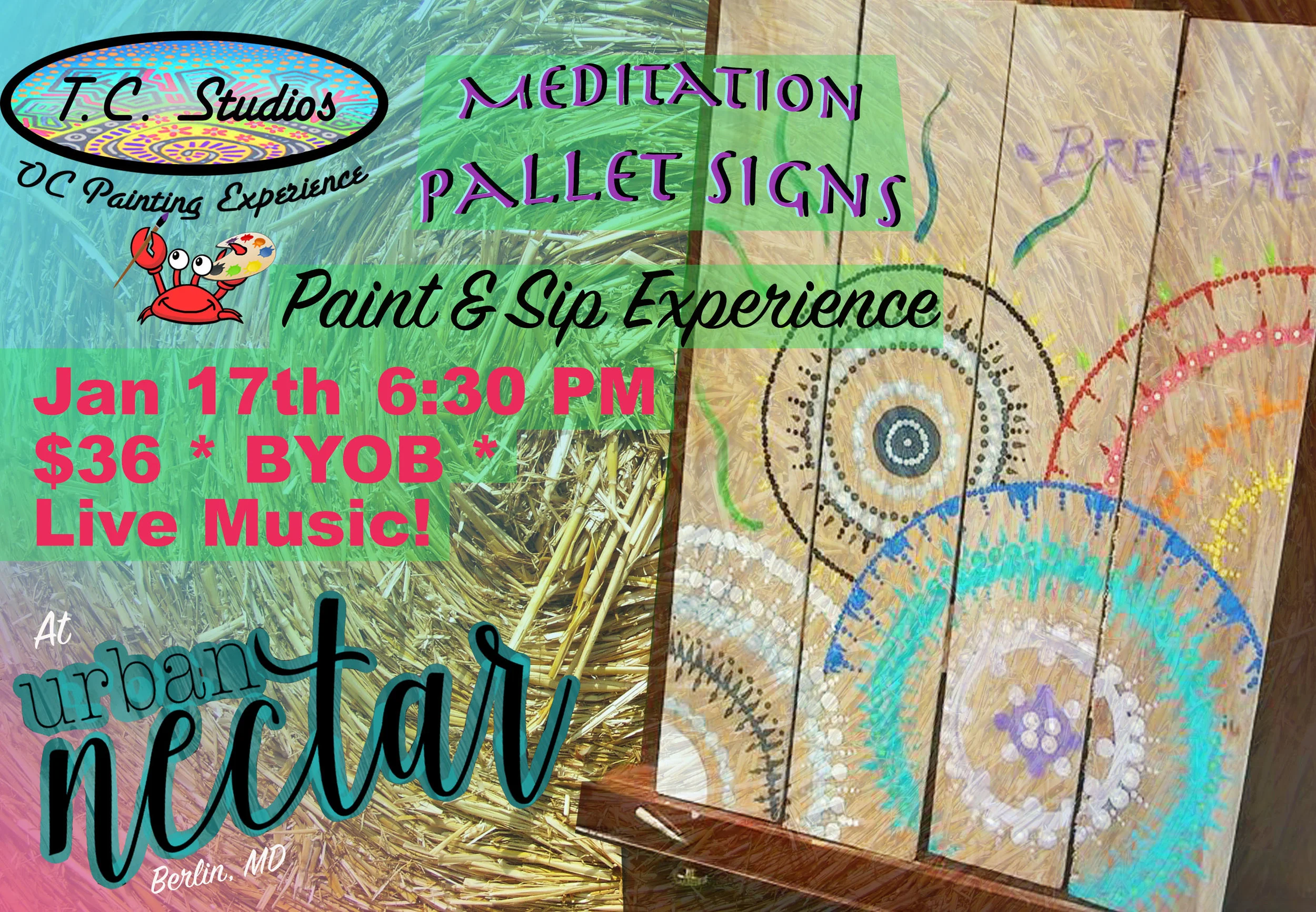 Paint, Sip & Meditate as we paint Pallet Signs at Urban Nectar Co-op on January 17th at 6:30!