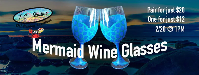 Pair of Mermaid Wine Glasses just $20! Monday, February 20, 2017 1:00 PM 2:30 PM 13:00 14:30 Google Calendar ICS Happy President's Day! Paint a pair of Mermaid Wine Glasses for just $20! Or just paint one glass for $12!