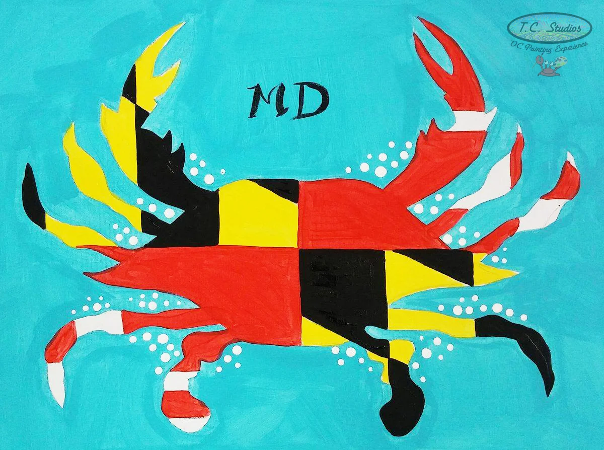 Show your MD Pride by painting "MD Crab!" You get to pick your background color! Our artist will sketch the design for you, so no worries about figuring out how to get all of those shapes in there! We make the process fun & easy. Makes a great gift too!